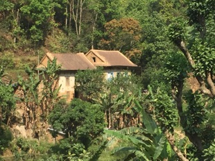 Her father was also in the car and we went to the new builded house, which was donated one year before when Noffi started a facebook campaign „donate for Rita‘s village“ and the collected money can rebuild three houses, which are now on a new place, down at the river bank. Before the family lived up in Falame up on the mountain, but now they took parts of their farm land to find a new and save place for three families ...