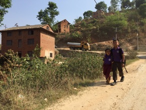 The way went over the bridge and the first step was Rita‘s family. Rita is the one who hospitalized me here in Bhaktapur. My friend Noffi from Germany, a very good decoration artist for Goa Parties is a very very good of the family and he was the one who offered me His appartment, which is on the top of the families home. Ritas husband works fare away in Qatar and Chukki the duaghter is the sunshine in the drama of Broken Nepal