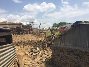 Many houses were not attacked, but few ones are gone. There was a nice rooftop restaurant, this fall totally down at at the banks of the Indrawati river many houses are gone.