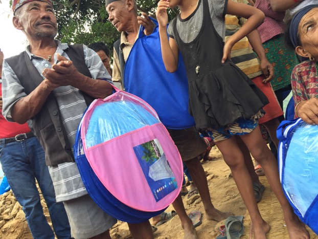 She made a list who get how much for all the people in their huts and the little daughter Chhuki got the job to distribute the nets to the people ..